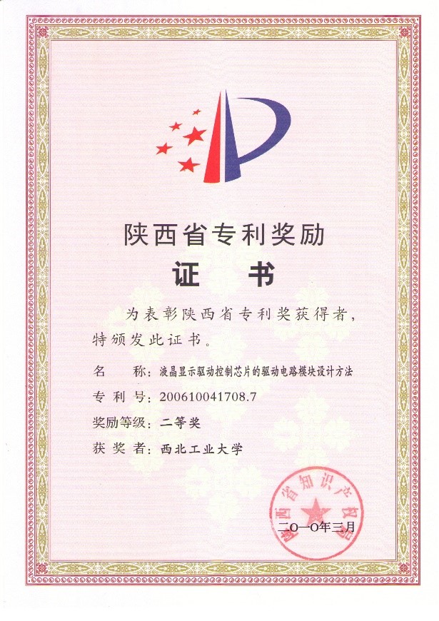 3) “液晶显示驱动控制关键技术与应用”,获得2010年度陕西省科学技术二等奖。(第一完成人)