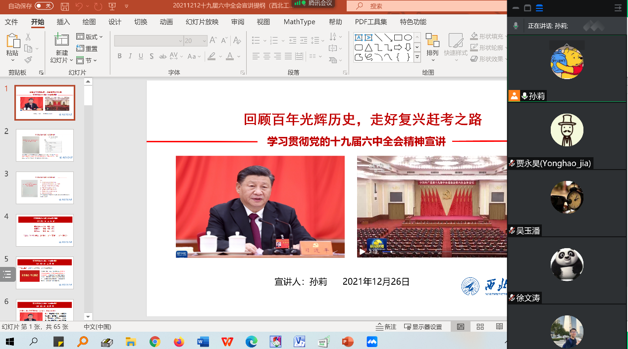 师生联合二支部深入学习贯彻党的十九届六中全会精神,由支部书记孙莉为支部党员同志讲授党课“回顾百年光辉历史,走好复兴赶考之路——学习贯彻党的十九届六中全会精神宣讲”。本次党课活动全体党员同志按时参加,考虑到国产色情