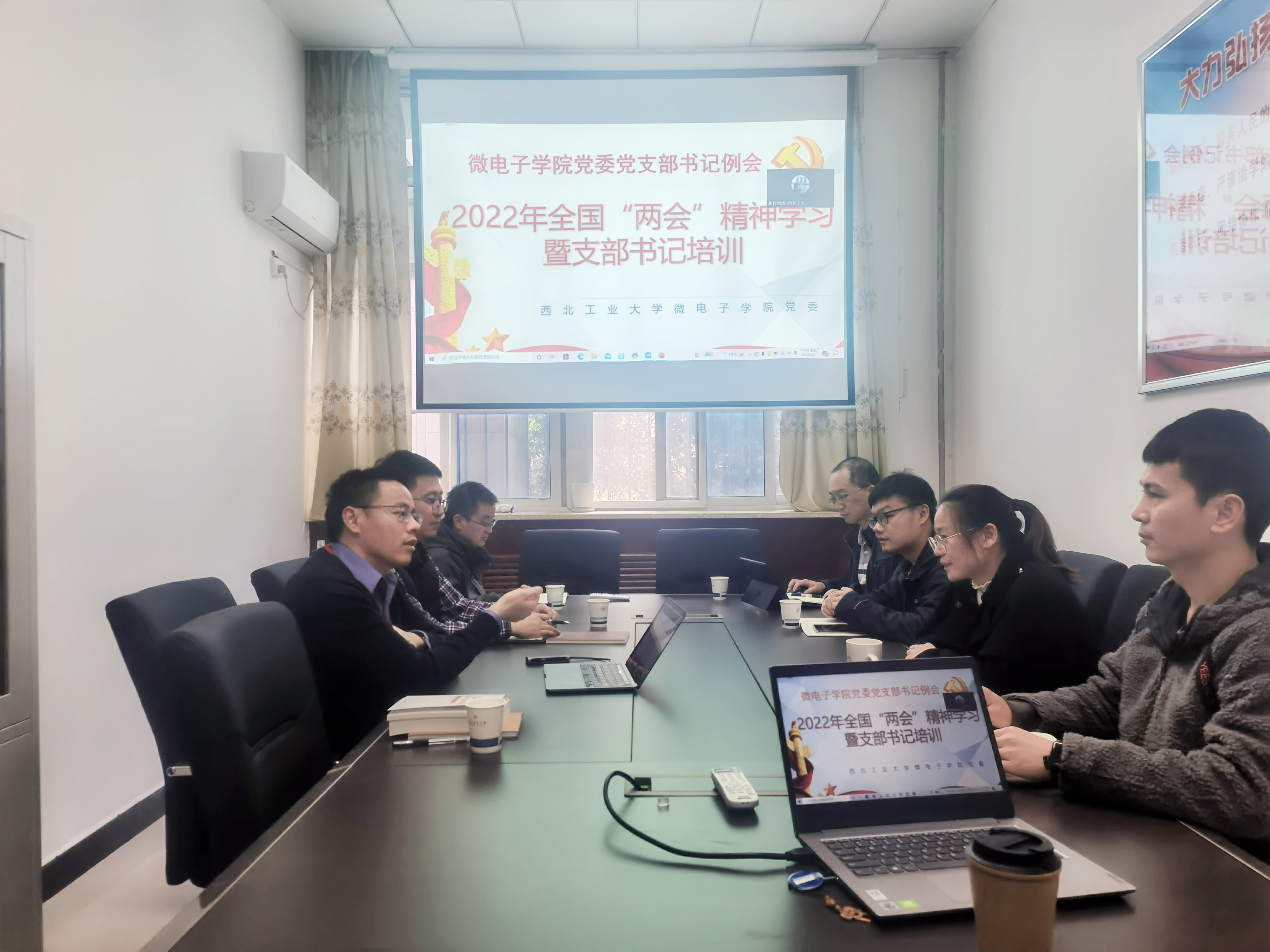 在学院楼140会议室召开2022年全国两会精神学习暨支部书记培训会议。会议由学院党委副书记(主持工作)甘雪涛主持,西安/太仓地区党支部书记分别线上线下联动参加。
