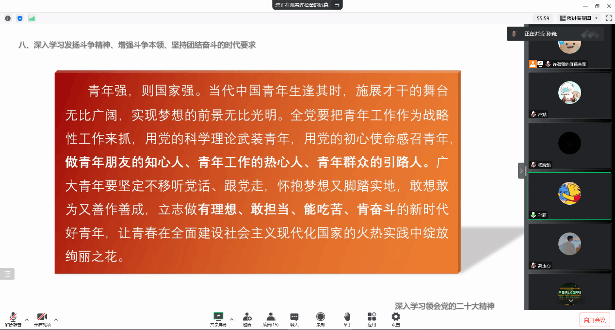 太仓师生联合党支部举办深入学习领会党的二十大精神专题党课,深入学习领会党的二十大精神。本次会议由支部副书记连蓓蕾主持,全体党员同志按时参加。