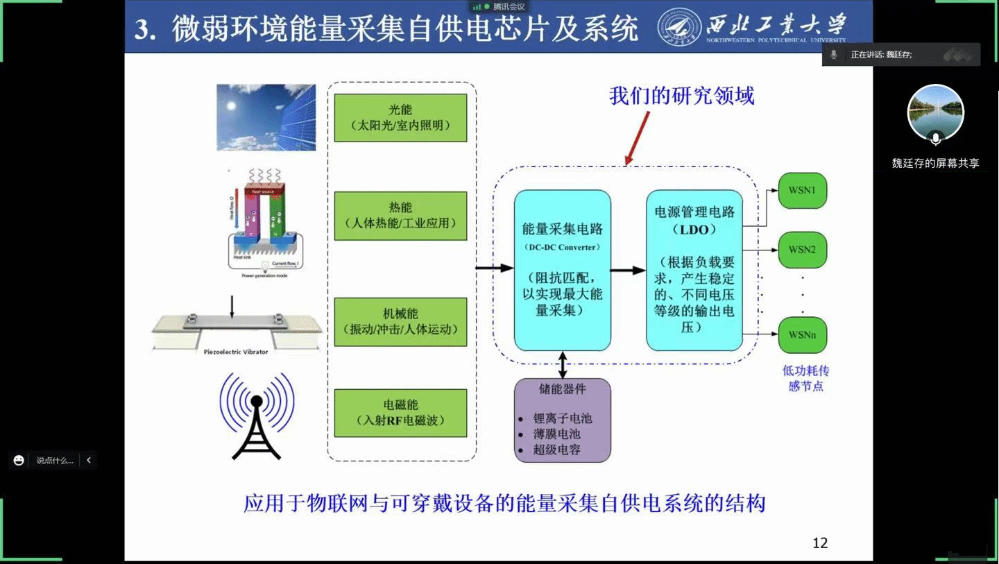博士生导师,“微电子科学与工程”学科带头人魏廷存教授向大家介绍了团队在高频数字电源智能控制芯片及系统、辐射探测器前端读出芯片与微弱环境能量采集自供电芯片的相关研究。之后,系主任马彦昭老师也向大家介绍了西工大国产色情
