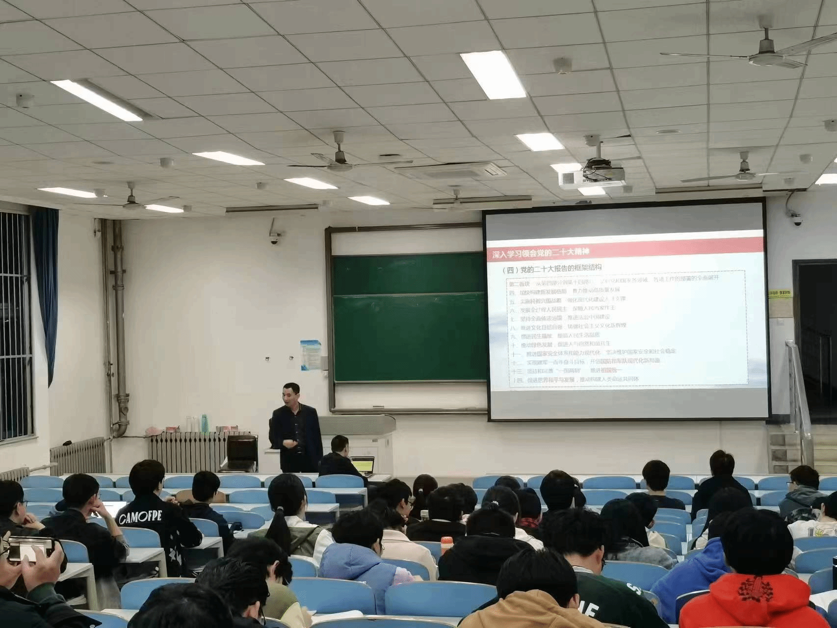 宣讲以党的二十大报告为切入点,带领我们聚焦党的二十大主题,回顾过去五年的工作和新时代十年的伟大变革,理解开辟马克思主义中国化时代化新境界、中国式现代化的中国特色和本质要求等重大问题和对新时代青年的要求,引导师生认识到新时代青年的使命与担当,鼓励青年师生肩负责任、勇于担当、善于作为、勇攀高峰,靠自己攻坚克难一些重大核心技术,担负起时代赋予我们的重任。