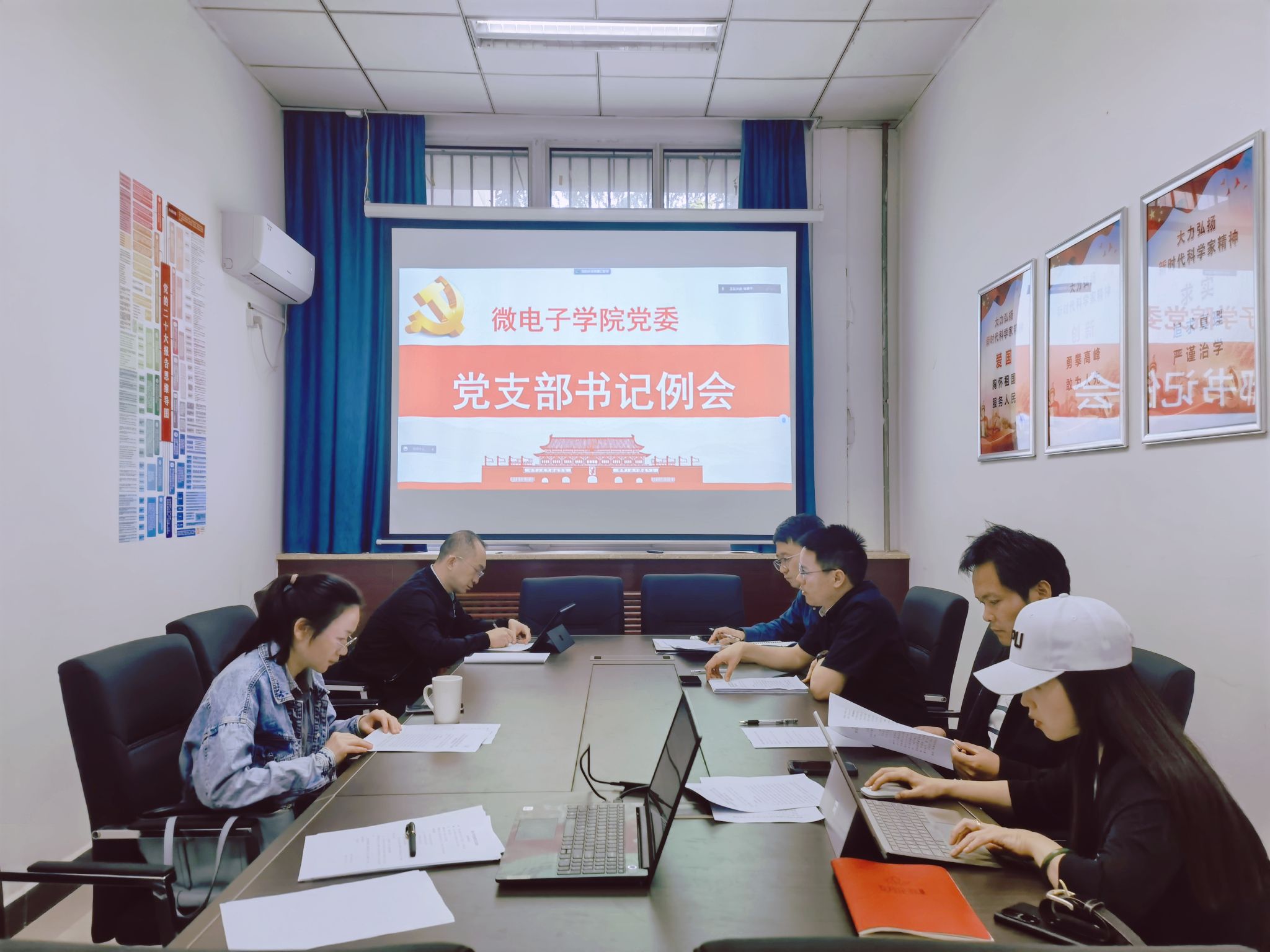 在学院楼140会议室召开党支部书记例会,研究部署学习贯彻习近平新时代中国特色社会主义思想主题教育工作,学院党委委员、党支部书记参加会议,会议由学院党委书记甘雪涛主持。