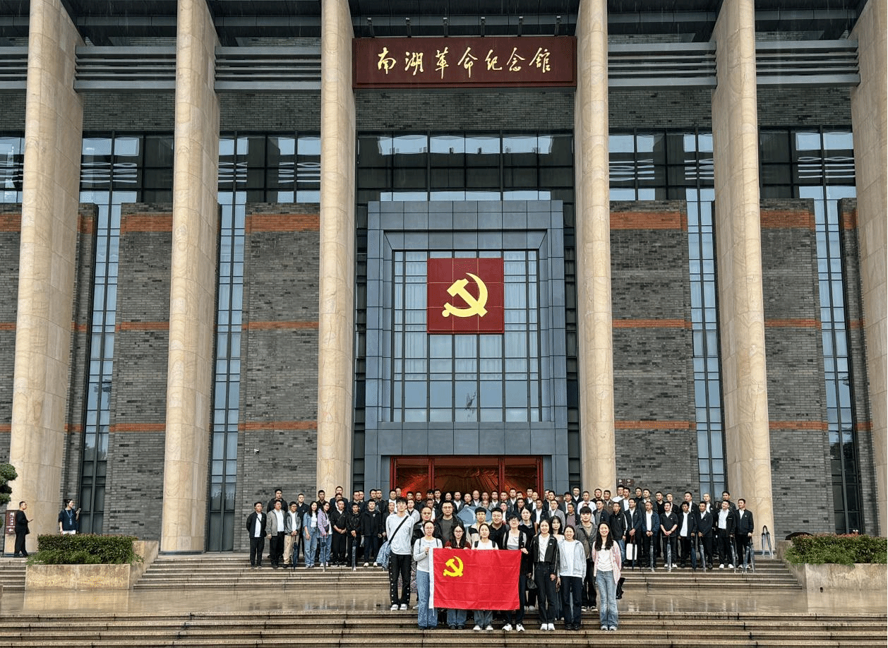 最后,队伍来到了南湖革命纪念馆。这座宏伟的建筑在雨中依然气势恢宏,馆内陈列着大量珍贵的历史文物和资料。师生党员一行人在纪念馆中认真参观,仔细聆听讲解,雨水的滴答声仿佛与历史的诉说交织在一起,深入地了解中国共产党的历史使命和奋斗精神。