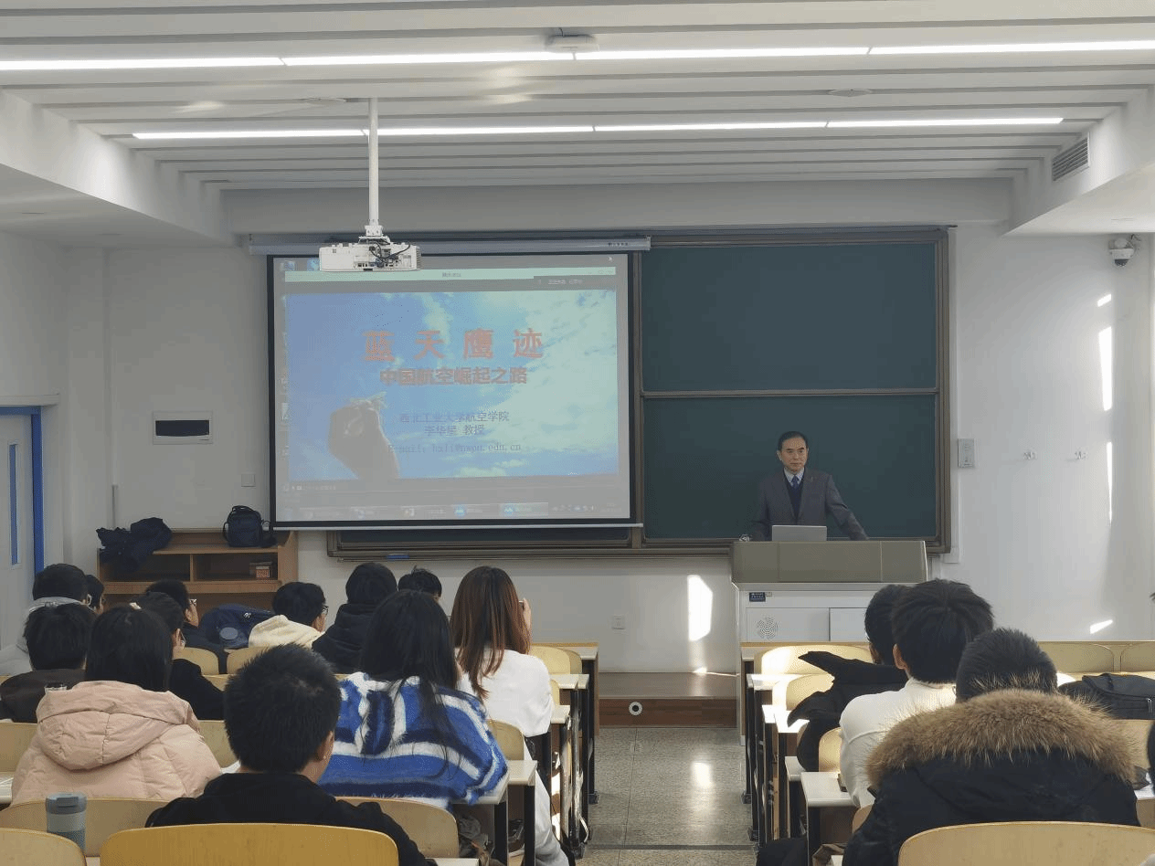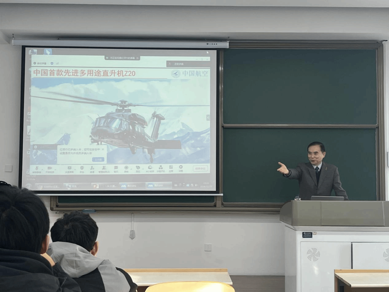“五老”宣讲团李华星教授为师生讲授“蓝天鹰迹——中国航空总设计师的成长之路”专题党课。学院各支部书记、委员、新转正党员、新发展的入党积极分子和发展对象参与学习。