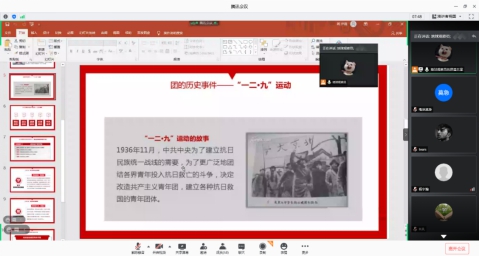 会上,周岸霄带领同学们学习了中国共青团的历史。中国共青团从1919年到1949年诞生,发展于1949年到1978年,并且从1978年至今,在中国共产党领导的改革开放和社会主义现代化建设新时期一步步发展壮大。通过对“一二•九”运动等重要历史事件的回顾,同学们从中感受到了先辈们的爱国热情和满腔热血。