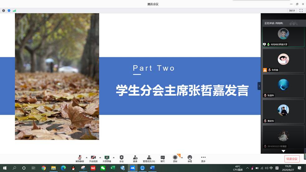 随后,第一届学生会主席张哲嘉同学对学生会一年来的工作做出了总结并且和大家分享了自己的体验和感受。
