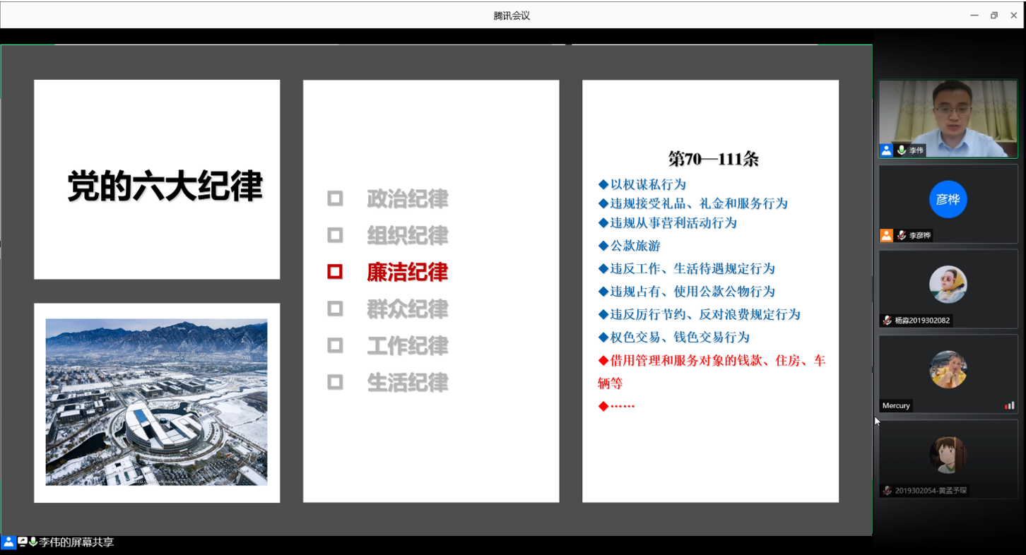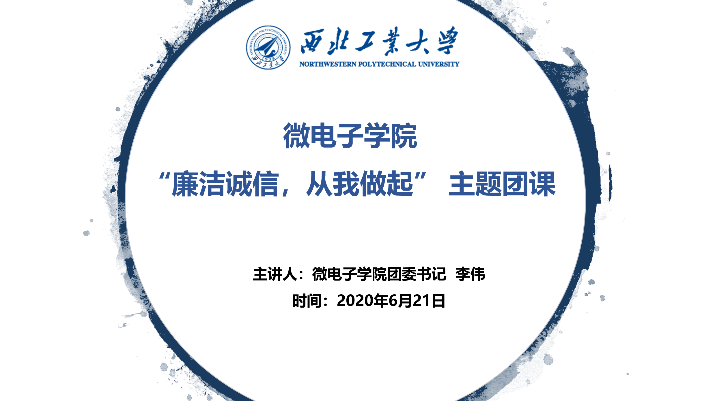 为进一步加强大学生思想政治教育,让同学们正确理解和认识到反腐倡廉对自身和国家的重要意义,国产色情 团委于2020621日为电子信息类12-15班的所有团员在线开展了 “廉洁诚信,从我做起”主题教育团课,向同学们讲解团学青年和学生骨干在日常学习和生活中所应遵守的廉洁品质。