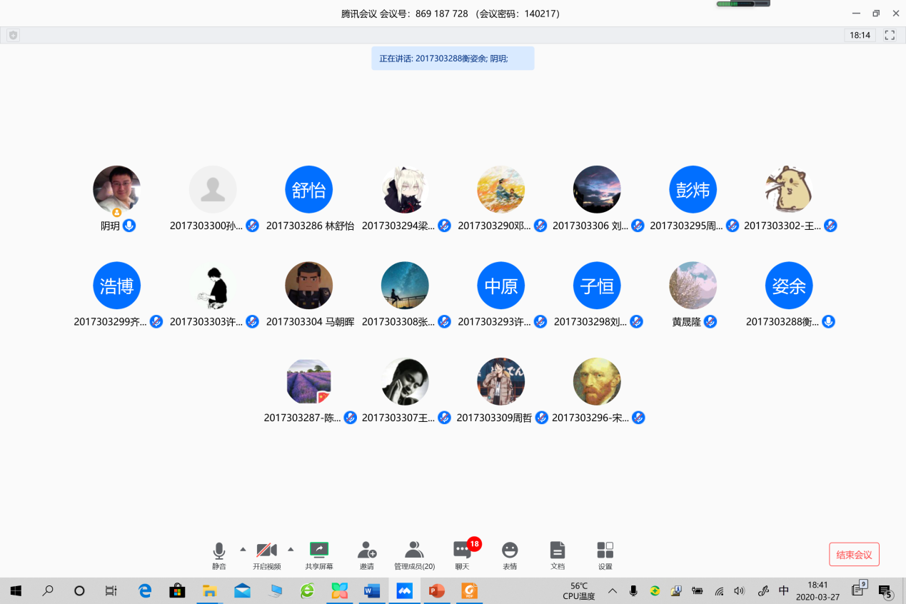 采取“停课不停学,线上云学习”方式保证教学进度的同时,不断强化学生管理工作,坚持抓班风促学风,3月23日至27日,学院组织2017级本科班在云端分别开展了战“疫”系列主题班会,各小班班主任与同学们就疫情防控、思想状态、学习方法、学业分析等方面进行了深入交流。