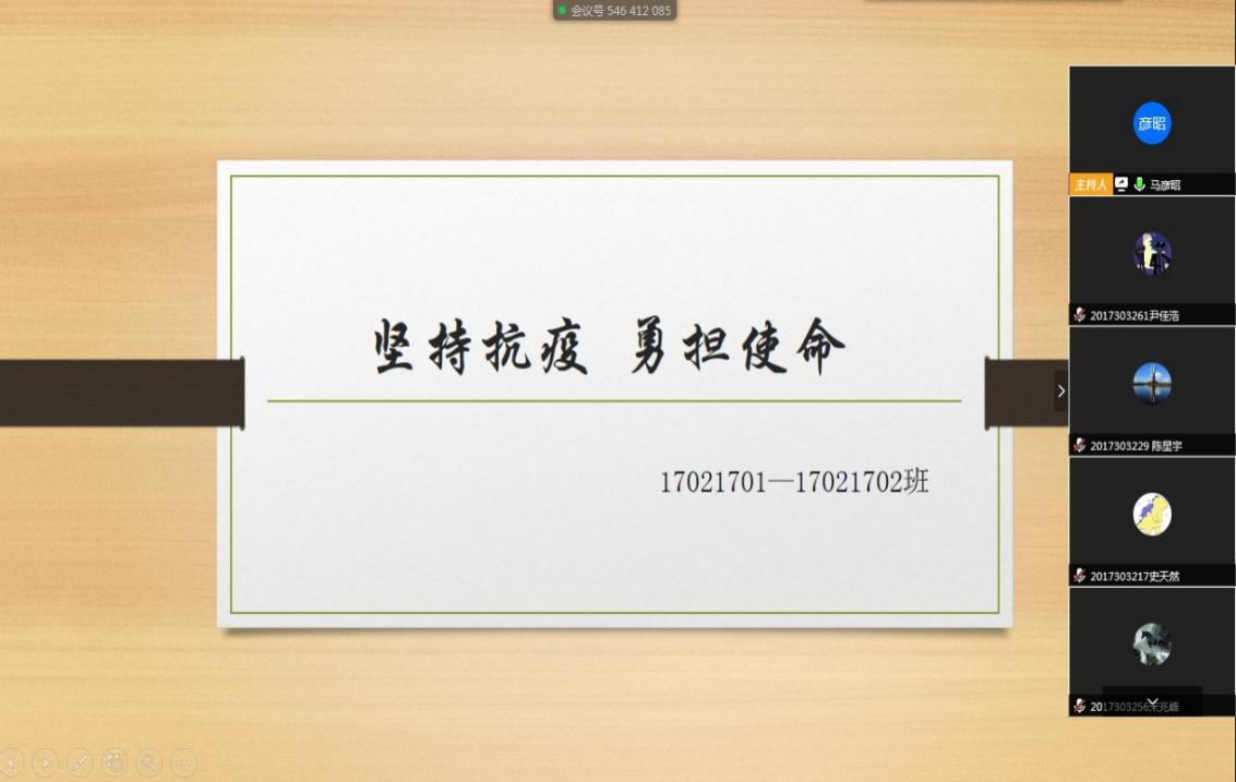 本次云端系列主题班会是学院在疫情防控特殊形势下对学生工作的统一部署与安排,2017级全体师生将严格遵守学校和学院的各项规定,戮力同心,共克时艰,以实际行动支持抗疫阻击战走向全面胜利,期待春来相聚再展欢颜!