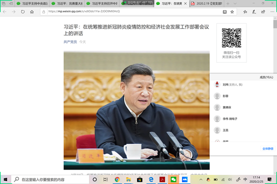为深入学习贯彻习近平总书记关于新冠肺炎疫情防控工作的重要讲话精神,按照学校和学院党委的工作部署,微电子师生联合党支部教工党小组通过腾讯会议积极进行线上学习。3月25日,教工党小组全体成员开展了一次疫情防控主题党日活动。