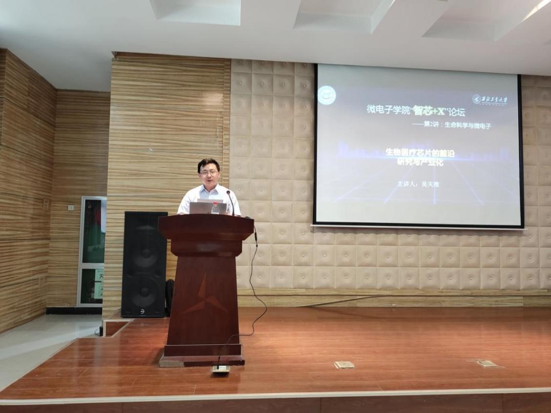 吴天准做了题为“生物医疗芯片的前沿研究与产业化”的主题报告。该报告属于生命科学与微电子的交叉学科方向,主要包括背景介绍、神经电子操作系统、基于微纳技术的神经接口、基于仿生微流控的分子诊断以及研究平台的产业化五个方面。吴老师首先介绍了生物医疗与微电子交叉领域的兴起和前景,指出芯片赋能、神经电子、脑机接口等技术在医疗健康领域逐步扮演重要角色。接着,他又结合自己工作,以神经电子操作系统中的视网膜假体为例,详细介绍了该项目的核心技术与关键挑战。