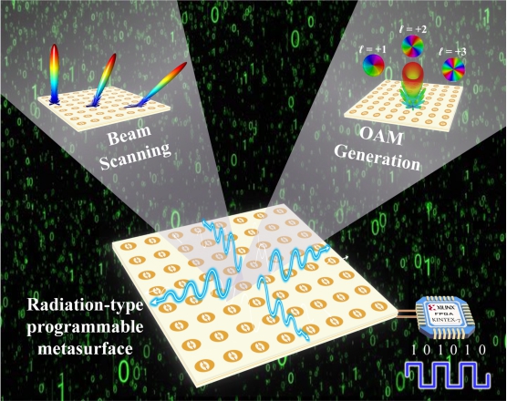 数字超构表面是近年来人工电磁超材料的最新研究方向,一般由亚波长尺度的结构单元以周期或准周期排列所构成,通过加载PIN二极管或MEMS开关等有源器件实现单元的相位重构,并结合FPGA数字技术来动态调控数字超构表面的整体编码分布,实现对电磁波的精细调控。现有反射式或透射式数字超构表面的共同特点是都需要额外的空间激励馈源,馈源通常距离功能表面数倍波长,直接导致了系统的整体剖面较高,很难满足车载、机载或星载系统低剖面、共形集成化等实际需求,无法适用于高速飞行器、宇航平台等安装空间有限或需要共形的场合;同时,馈源天线存在的空间漏射问题也显著制约了数字超表面系统的总体效率。