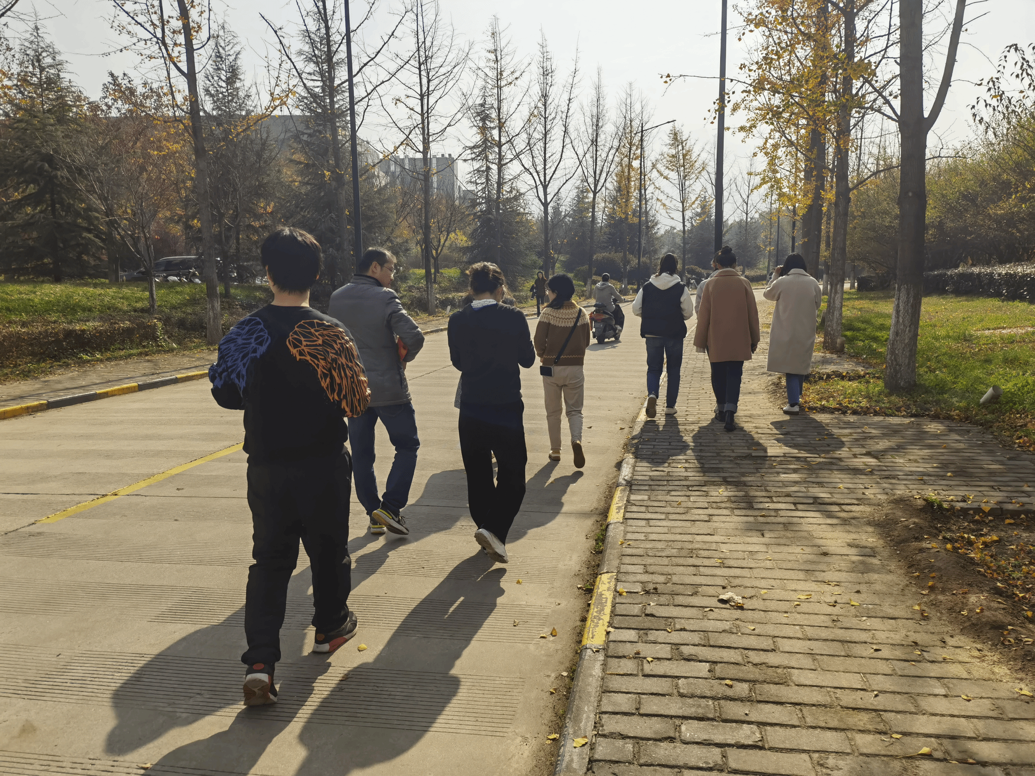 午饭后,学院教工从学院西门出发,在风景如画的工大新校区,漫步在启翔湖、启真湖旁,感受深秋湖畔"蒹葭苍苍、白露为霜"的诗情画意,赞叹依山傍水、宏大开阔的校园环境,享受惬意、悠闲的时光。