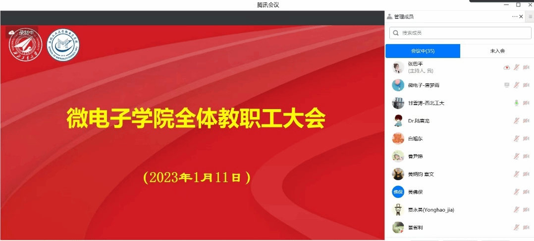 分别组织召开全体教职工大会,大会对师德师风、年终绩效分配、岗位聘任聘期考核、党风廉政、寒假安全稳定等方面进行通报和部署,会议由学院党委书记甘雪涛主持。