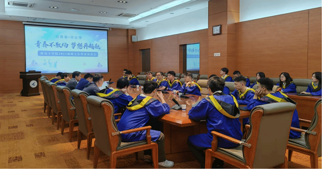 2023届硕士毕业生座谈会在启真楼110会议室召开。学院党委书记甘学涛、副院长王少熙、副书记余鹏及2023届硕士毕业生参加座谈会。本次座谈会由学院党委副书记余鹏主持。