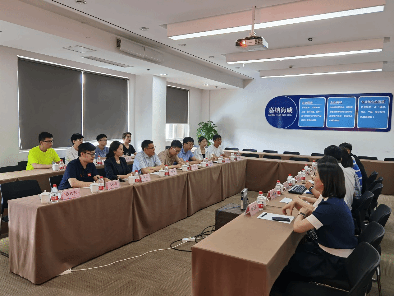 随后,召开座谈会,王测天介绍了公司主要产业、近年来业绩,他表示,希望双方在人才培养、科技创新等领域建立更为深入、更为持久的合作,为国家科技自立自强和新兴产业的快速发展贡献力量。甘雪涛从学院发展历程、师资组成队伍等方面介绍了学院基本情况。双方均表示本次调研交流活动既是加深了解、增进友谊的过程,也为促进双方成长和进步提供了平台和契机,希望今后能进一步加强交流互动、促进共同进步。