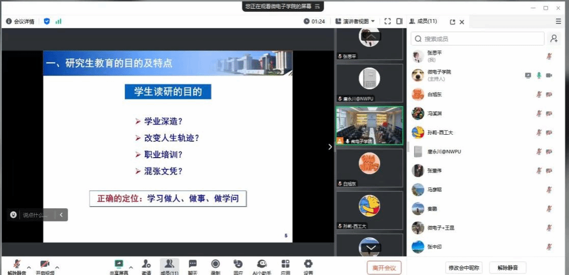 本次培训会聚焦研究生教育相关问题,加强了导师对岗位责任的理解,导师纷纷向赵老师提问,并表示本次培训内容全面、及时解惑,受益良多,对提升学院研究生人才培养质量具有至关重要的促进作用和指导意义。