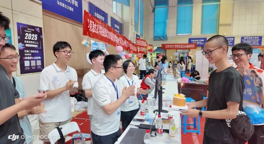 的学科优势与人文底蕴融入其中,新生依次驻足留影,镜头捕捉下的不仅是与学院的初次邂逅,更是一段青春与理想的郑重对话。工作人员还为当日过生日的新生准备了惊喜,共同庆生将迎新活动的热烈氛围推向高潮。